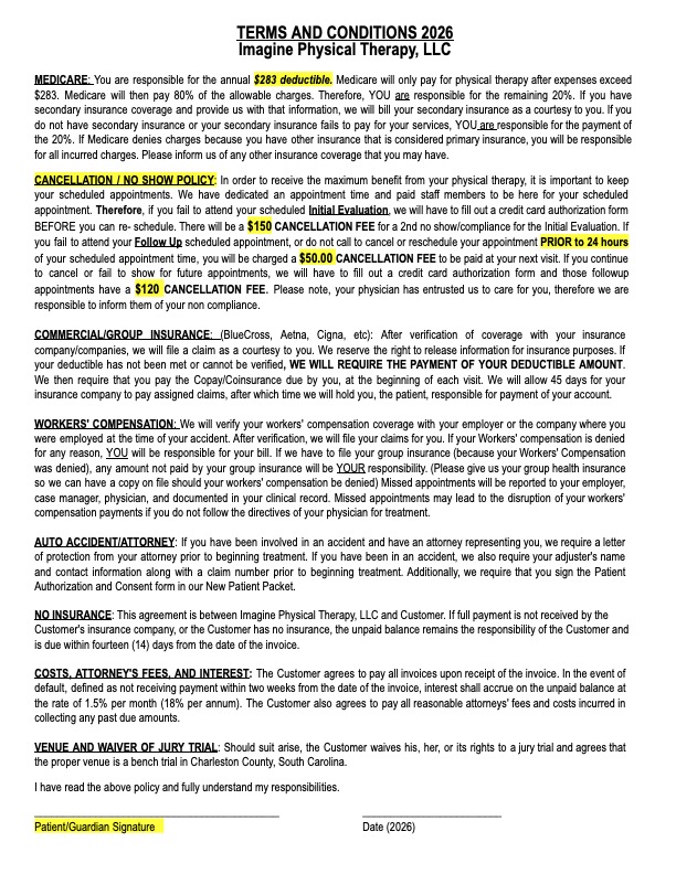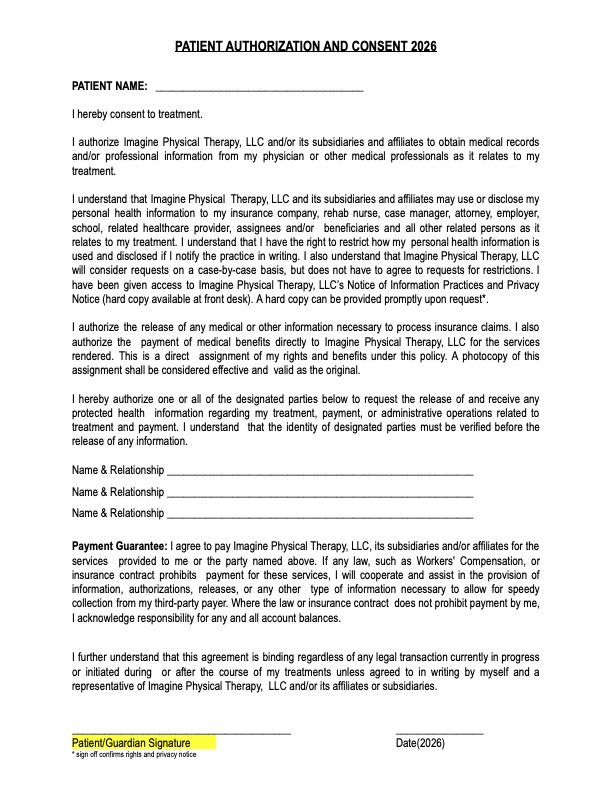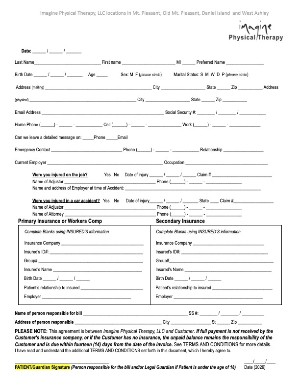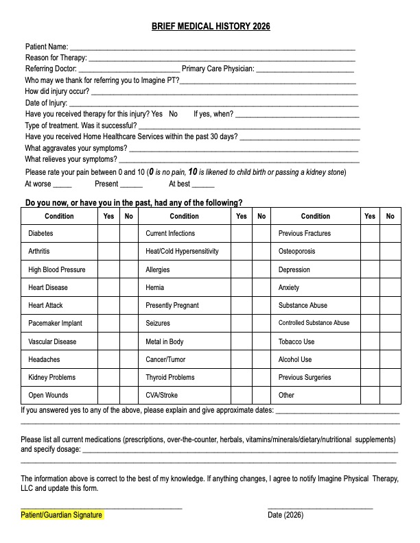 Here you can view Imagine Physical Therapy's Patient Forms